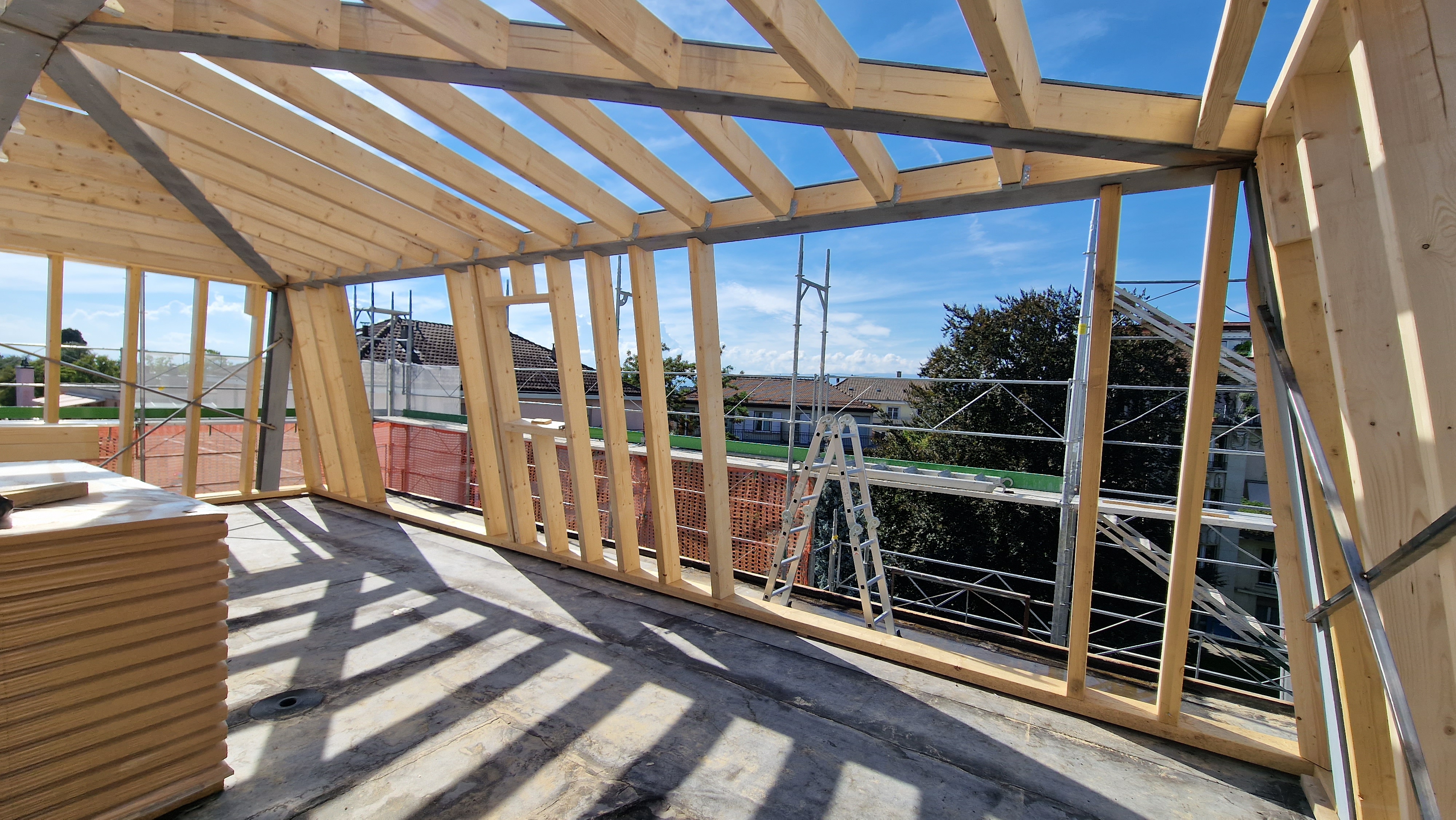 Nous vous proposons tous les produits de construction bois : créations, projets, rénovations, surélévations d'immeubles, traitements de charpente, isolations de toitures, petits travaux et pose de menuiserie, dessins en 3D.